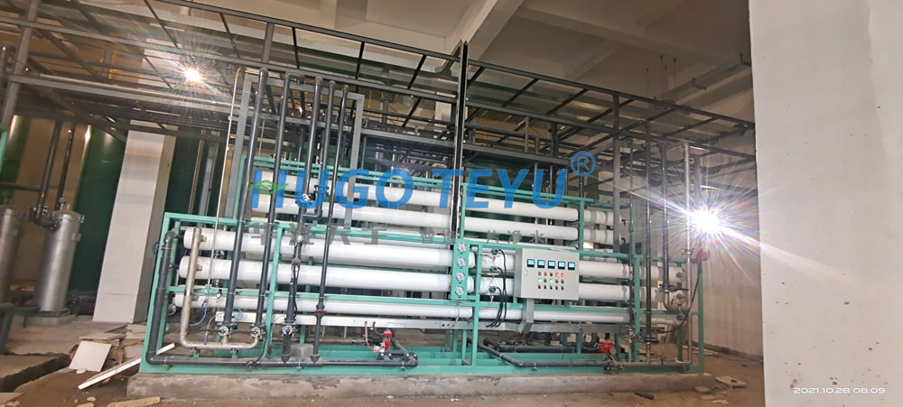 項目概括:  新航集團80T/H超純水項目,軍工航天配件清洗用水  工藝流程:  原水箱→碟片過濾器→超濾設備→超濾產水箱→一級高壓泵→一級反滲透→一級反滲透產水箱→二級高壓泵→二級反滲透→增壓泵→二級反滲透產水箱→EDI→除鹽水泵→除鹽水箱